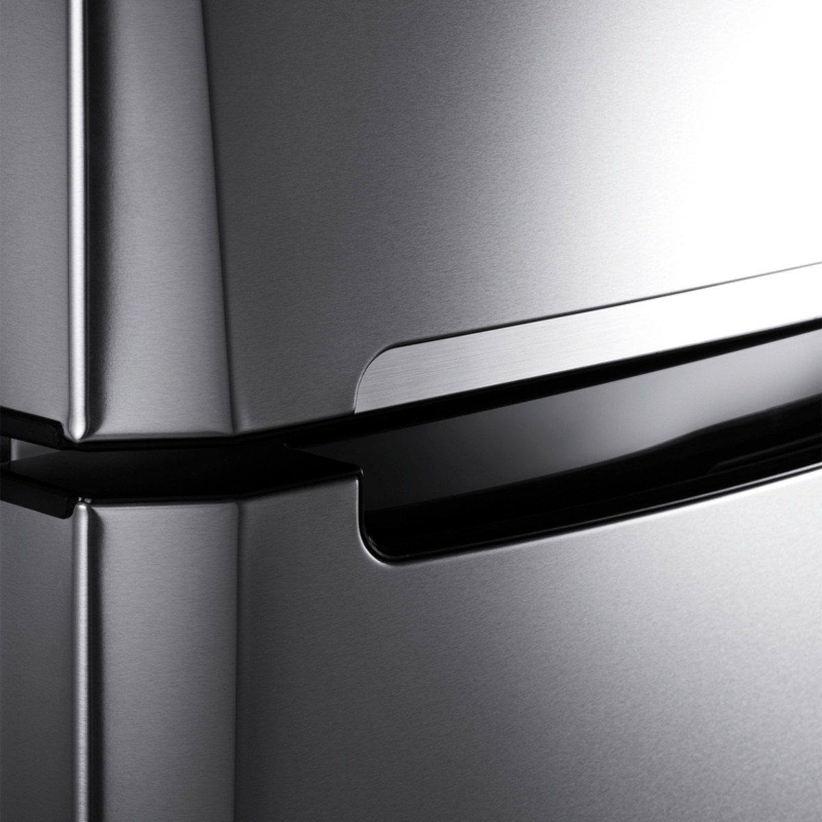 Equipada con compresor Inverter, garantiza un funcionamiento silencioso y un consumo energético optimizado, logrando clasificación energética A, lo que se traduce en ahorro constante para tu hogar. Su exterior en lámina inoxidable anti-huella mantiene una apariencia limpia y elegante, mientras que sus puertas lisas con manija frontal integrada aportan un estilo sofisticado y práctico.