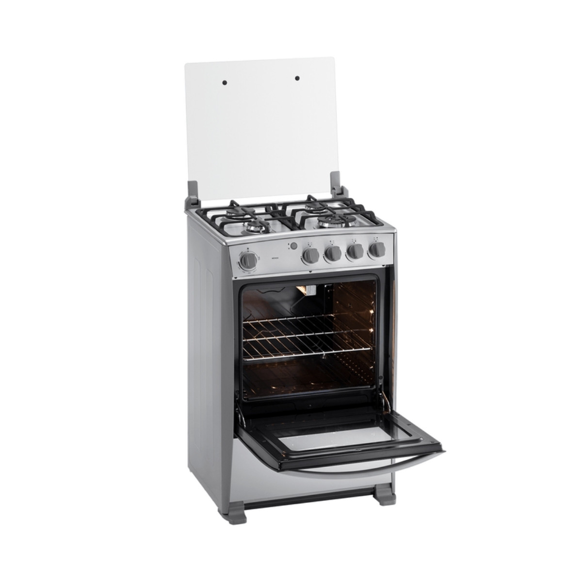 Su horno incorpora características ideales para una experiencia culinaria completa: grill a gas, doble vidrio templado, encendido electrónico y luz interior, permitiendo cocinar, gratinar y dorar con precisión. El control por pulsante tanto en el tablero como en el horno facilita el uso diario, mientras que su quemador de suelo garantiza un horneado uniforme, esencial para panes, postres y recetas que requieren estabilidad térmica.