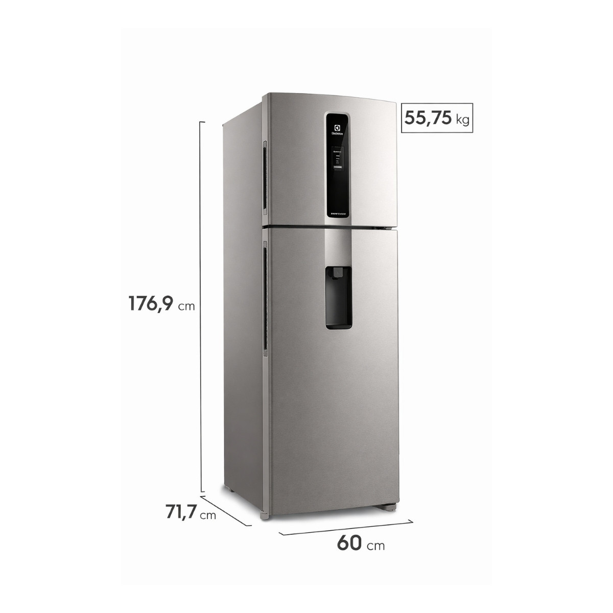 La Refrigeradora No Frost Top Mount Electrolux IW43S de 382 litros combina diseño moderno, eficiencia y tecnología inteligente. Cuenta con Tecnología Inverter, dispensador de agua, AutoSense con inteligencia artificial, iluminación LED y TasteGuard, que elimina malos olores. Ideal para conservar tus alimentos por más tiempo con ahorro energético.