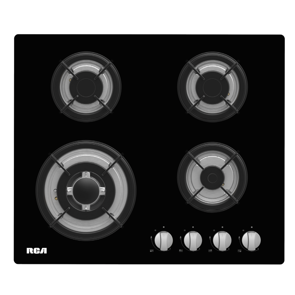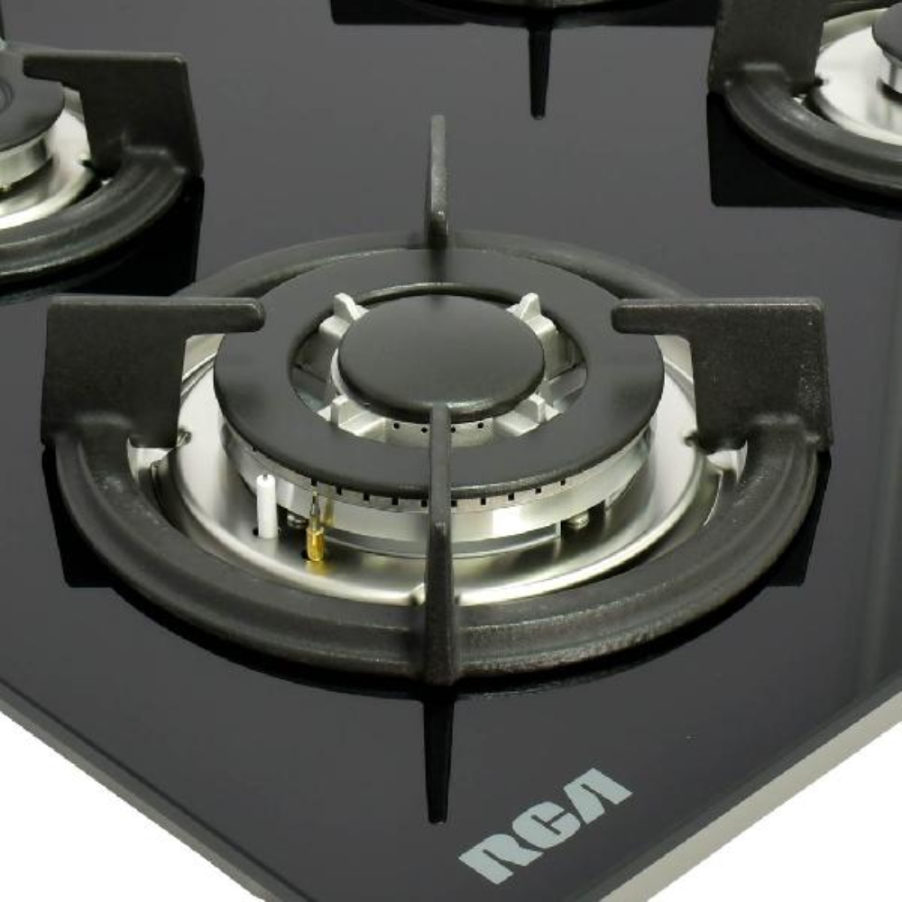 La encimera RCA de 4 quemadores con vidrio templado combina estilo y funcionalidad.