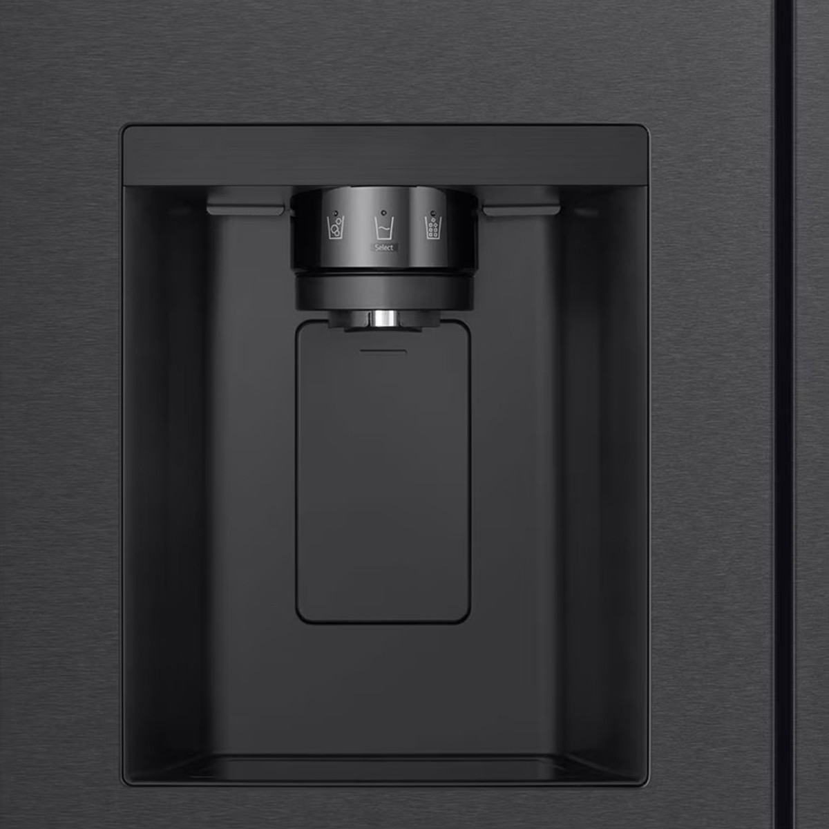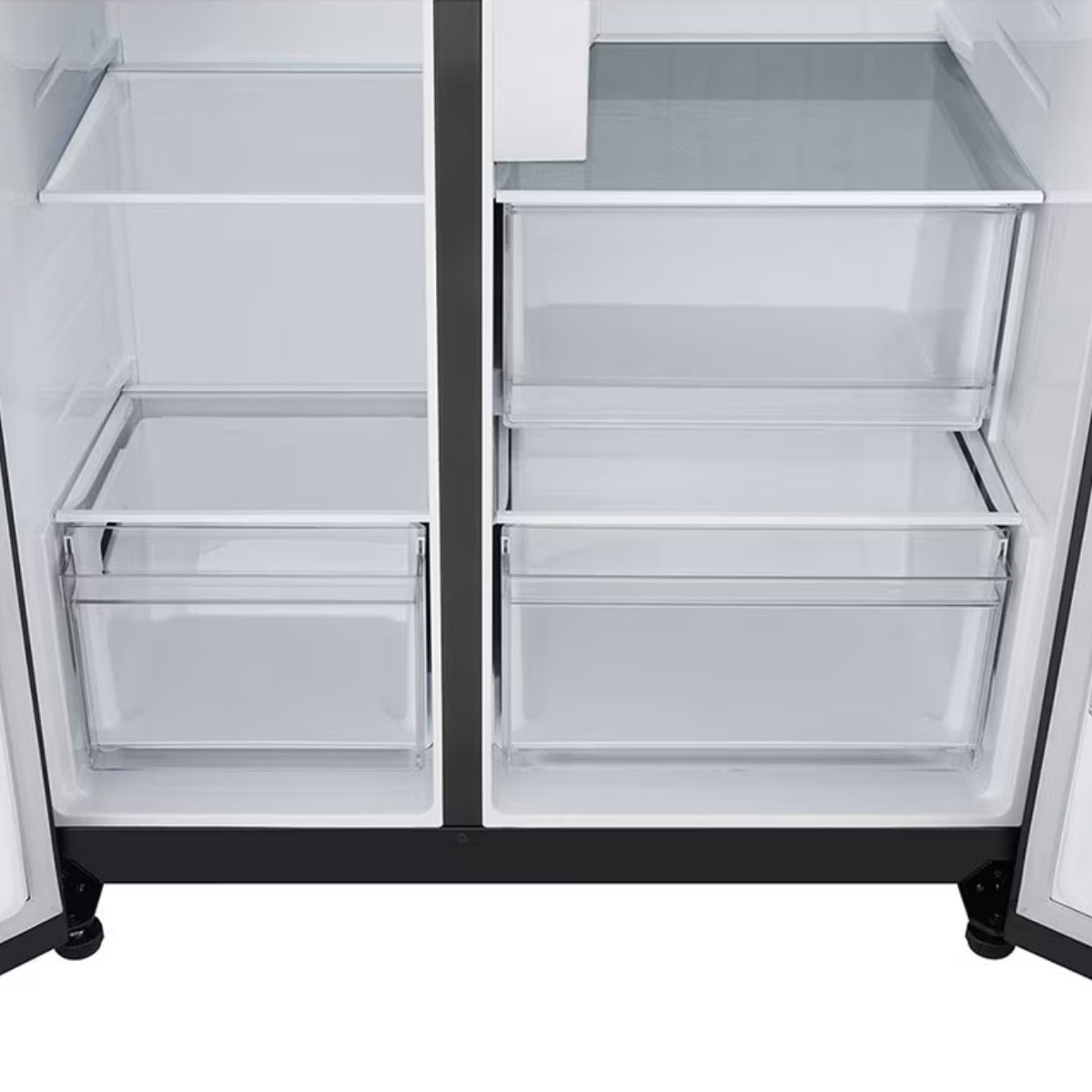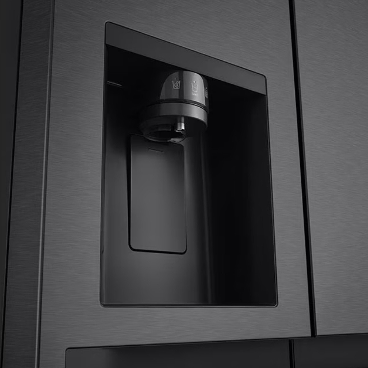 La refrigeradora LG VS25LQIK ofrece 621 litros de capacidad neta, diseño Side by Side y Smart Inverter Compressor para mayor ahorro energético, menor ruido y mejor durabilidad. Incluye dispensador de hielo y agua, sistema de enfriamiento eficiente y un acabado Essence Matte Black que realza cualquier cocina moderna.