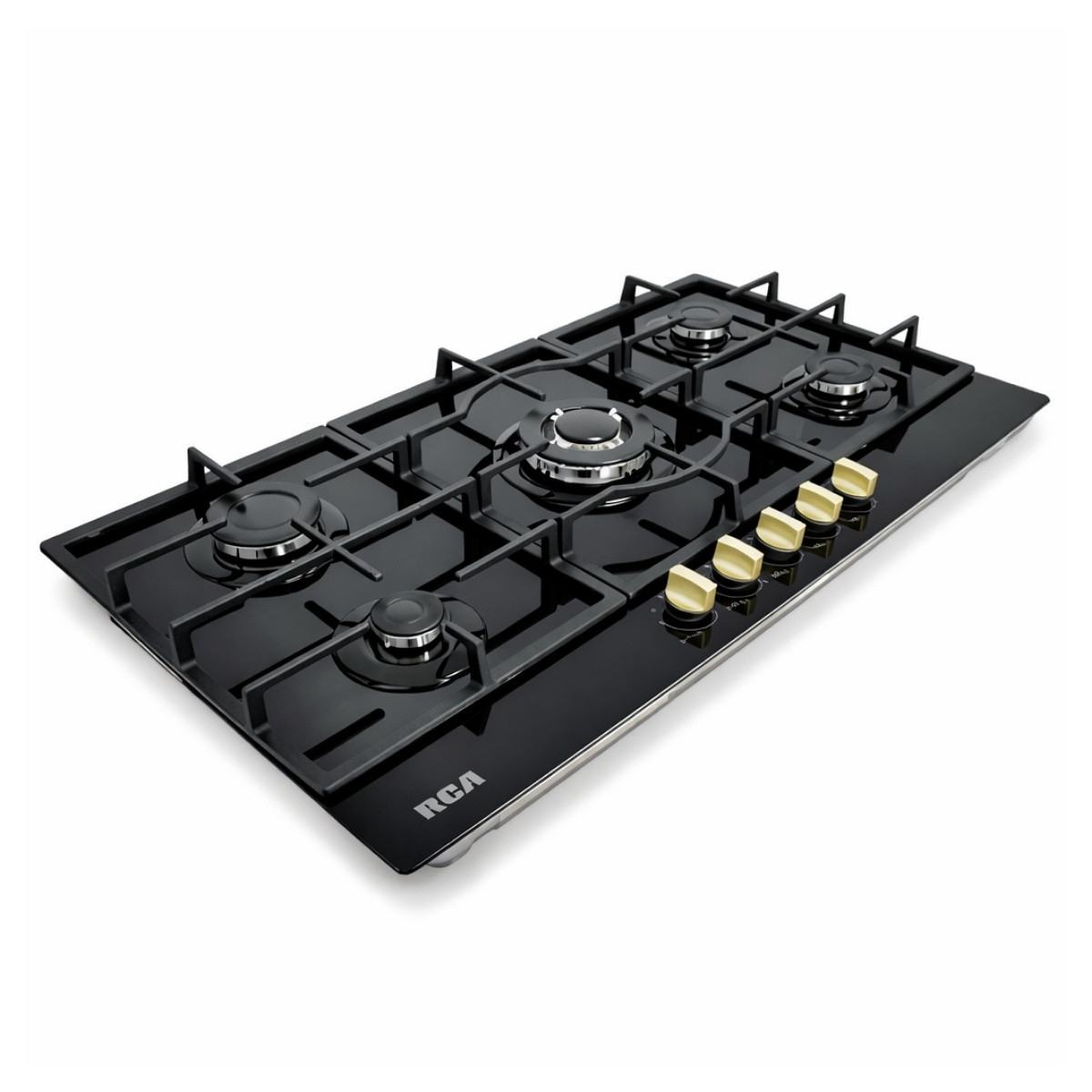 La Encimera a Gas RCA 90G-060 en color negro combina diseño moderno y máxima seguridad. Cuenta con 5 quemadores sellados, incluido Triple Corona, parrillas de hierro fundido, superficie de vidrio templado y sistema corta gas, ideal para cocinar con potencia, precisión y fácil limpieza.